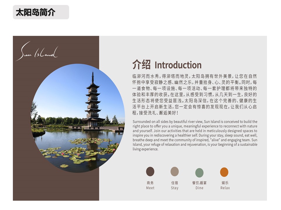 核舟上海團(tuán)建基地-太陽(yáng)島國(guó)際旅游度假區(qū)是一項(xiàng)高起點(diǎn)、跨世紀(jì)的大型旅游景點(diǎn)建設(shè)項(xiàng)目。島上的高爾夫球場(chǎng),東西各9洞,各個(gè)球洞風(fēng)格迥異, 利用水位高差的特性,靠湖水來(lái)收集高爾夫球,可謂匠心獨(dú)運(yùn)。太陽(yáng)島上還建有13000平方米的國(guó)際俱樂(lè)部,內(nèi)有國(guó)際會(huì)議中心、名人展示館和商務(wù)服務(wù)中心。