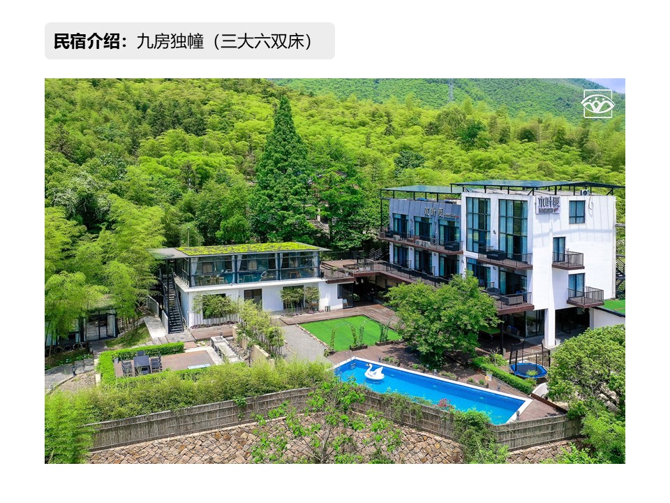 “木葉夏”坐落在莫干山正山腳下,交通便利,距離莫干山鎮3分鐘車程。獨門獨院,環境優美。占地五千平方米,自有客房14間,配套民宿客房14間,共有28個客房供選擇使用。