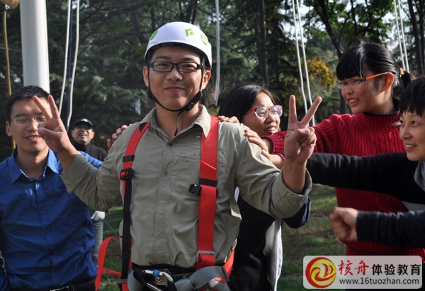 挑戰自我:在接受高空項目挑戰之前,隊友們給予加油、鼓勵……