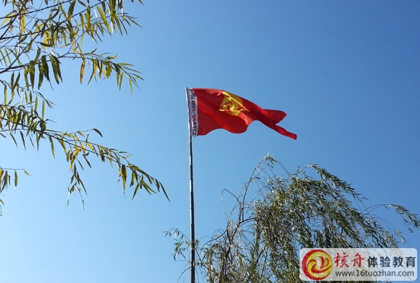 代表團隊精神和團隊正能量的核舟體驗旗幟冉冉升起,在微風中瀟灑舞動……