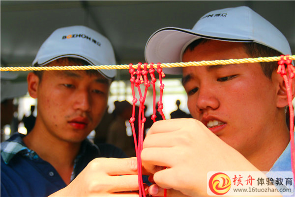結繩記事:古人為了要記往一件事,就在繩子上打一個結。以后看到這個結,他就會想起那件事。如果要記往兩件事,他就打兩個結。記三件事,他就打三個結,如此等等。如果他在繩子上打了很多結,恐怕他想記的事情也就記不住了,所以這個辦法雖簡單但不可靠。過程:組成員在規定的討論時間內制作出本隊的密碼本,根據密碼本可以翻譯英文 中文 數字 標點符號等信息,隨后將小組成員分成兩部分,一部分為編碼人員 ,另一部分為編譯人員,編碼人員在限定的時間內將教練提供的信息制作成繩結,隨后編碼人員離開,由編譯人員將繩結的信息翻譯成教練提供的信息。