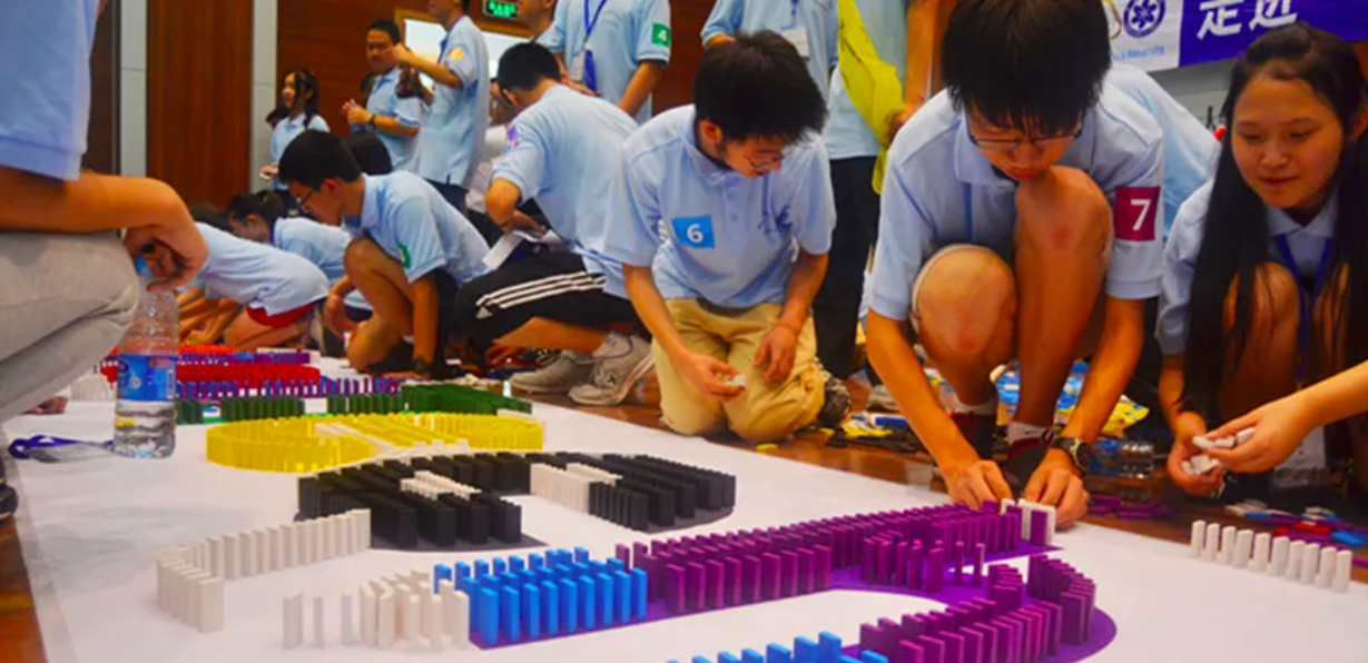 這是集動(dòng)手、動(dòng)腦于一體的運(yùn)動(dòng)。將骨牌按一定間距的尺寸排成單行,或分行排成一片。推倒第一張骨牌,其余發(fā)生連鎖反應(yīng)依次倒下,或形成一條長(zhǎng)龍,或形成一幅圖案骨牌撞擊之聲,清脆悅耳;骨牌倒下之時(shí),變化萬千。除了可碼放單線、多線、文字等各式各樣的多米諾造型外,還可充做積木,搭房子,蓋牌樓、制成各種各樣的拼圖。