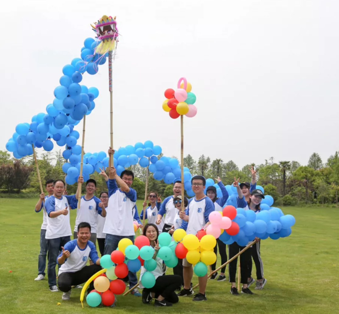 該項(xiàng)目相較于傳統(tǒng)舞龍,流程更簡(jiǎn)便。我們要用自己的雙手,用五顏六色的氣球制作出我們自己的心目中最完美且創(chuàng)意十足的泡泡龍,將自己的團(tuán)隊(duì)文化、企業(yè)文化的精髓融入設(shè)計(jì)理念,制作一條泡泡龍,并以此龍參加最后的舞龍比賽。