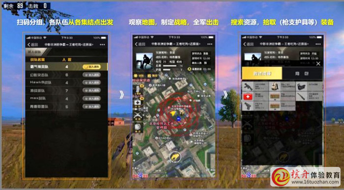 與手機同步,可以實現(xiàn)在現(xiàn)實戰(zhàn)斗場地撿彈藥、防彈衣、頭盔、藥包等;
